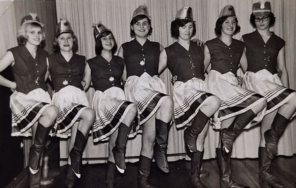 Das Foto zeigt eine Tanzgruppe des TVE, die im Jahre 1965 bei der letzten Kappensitzung im Saalbau Pötz aufgetreten ist. Zu sehen sind von links nach rechts: Hildegard Führer, Elisabeth Speth, Irene Ferdinand, Elisabeth Bärenfänger, Helga Weimer, Hella Speth und Birgit Pallentien. Einstudiert hat den Gardetanz damals schon Aloysia Rörig.