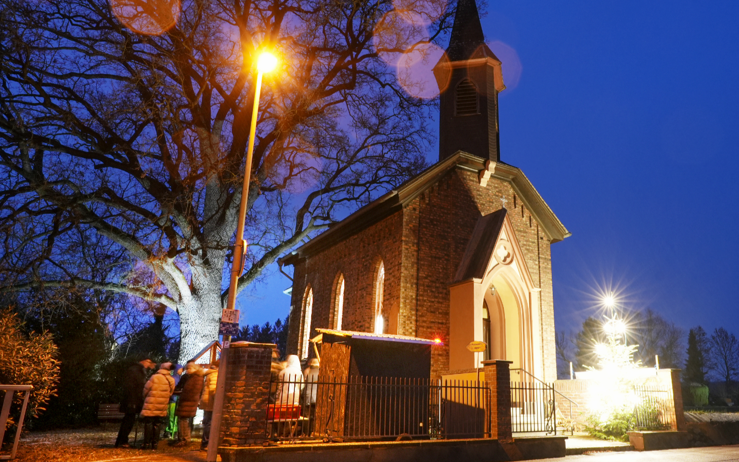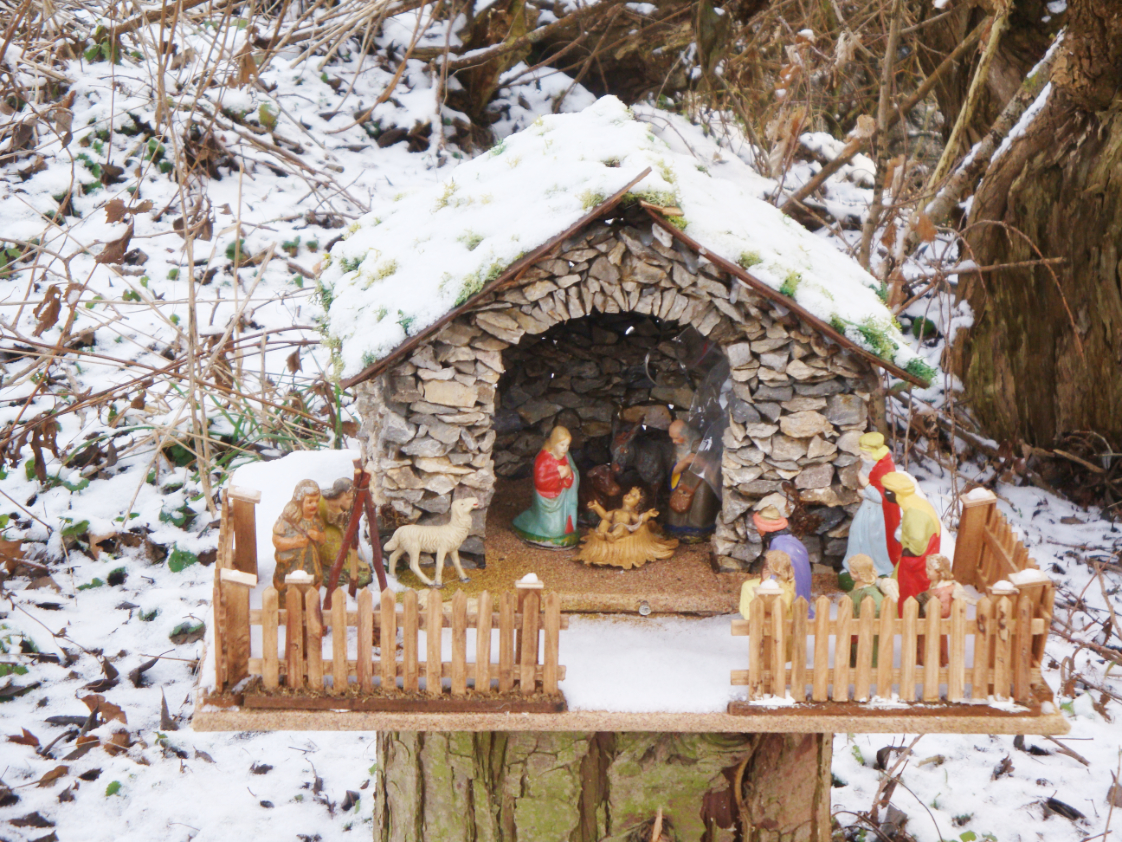 Die Eröffnung des Krippenweges war am Sa., den 20.12.2025 um 16.00 Uhr in der Nähe des Bahnhofes, zu der sich wieder ca. 30 Personen eingefunden hatten. Auf dem geteerten Rad- und Fußweg führte der Krippenweg über die Emsbachbrücke in Richtung des Schwengelsbergs, dann entlang eines Flutgrabens und des Emsbaches bis hinter den Parkplatz, und weiter neben der Straße von und nach Dehrn bis zum Ortseingang von Mühlen. Durch die Vielzahl neuer Krippen wurde der Weg ab hier erweitert. Er führte um die Kalteyer´sche Mühle über den Mühlbachweg, dann weiter durch die Rheinstraße und zurück über die Mühlener Straße bis zur St. Anna Kapelle.