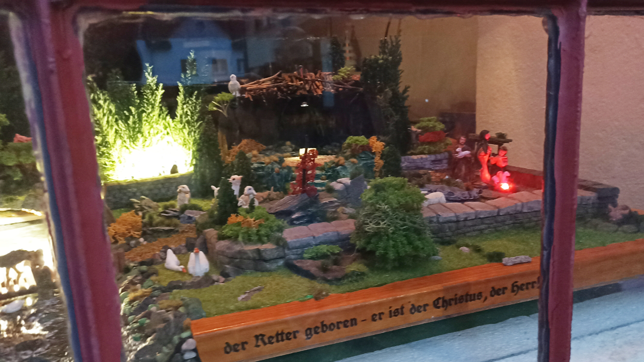 Des Weiteren lohnte sich ein Besuch im Hof der Familie Wagenbach in der Bahnhofstr. 1, insbesondere ein Blick durch zwei Fenster auf schöne beleuchtete Krippenlandschaften.